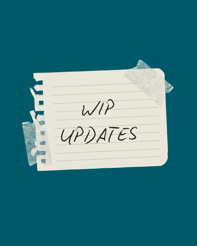 I will be doing a WIP update every week with these posts, to keep myself accountable as well as to keep my readers updated on all the details!